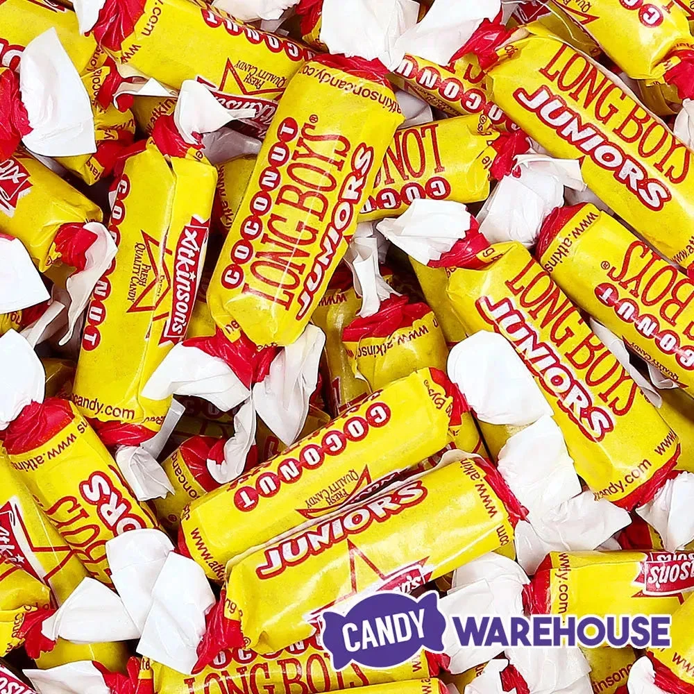 Tub contains 160 wrapped Coconut Long Boys Juniors Candy.