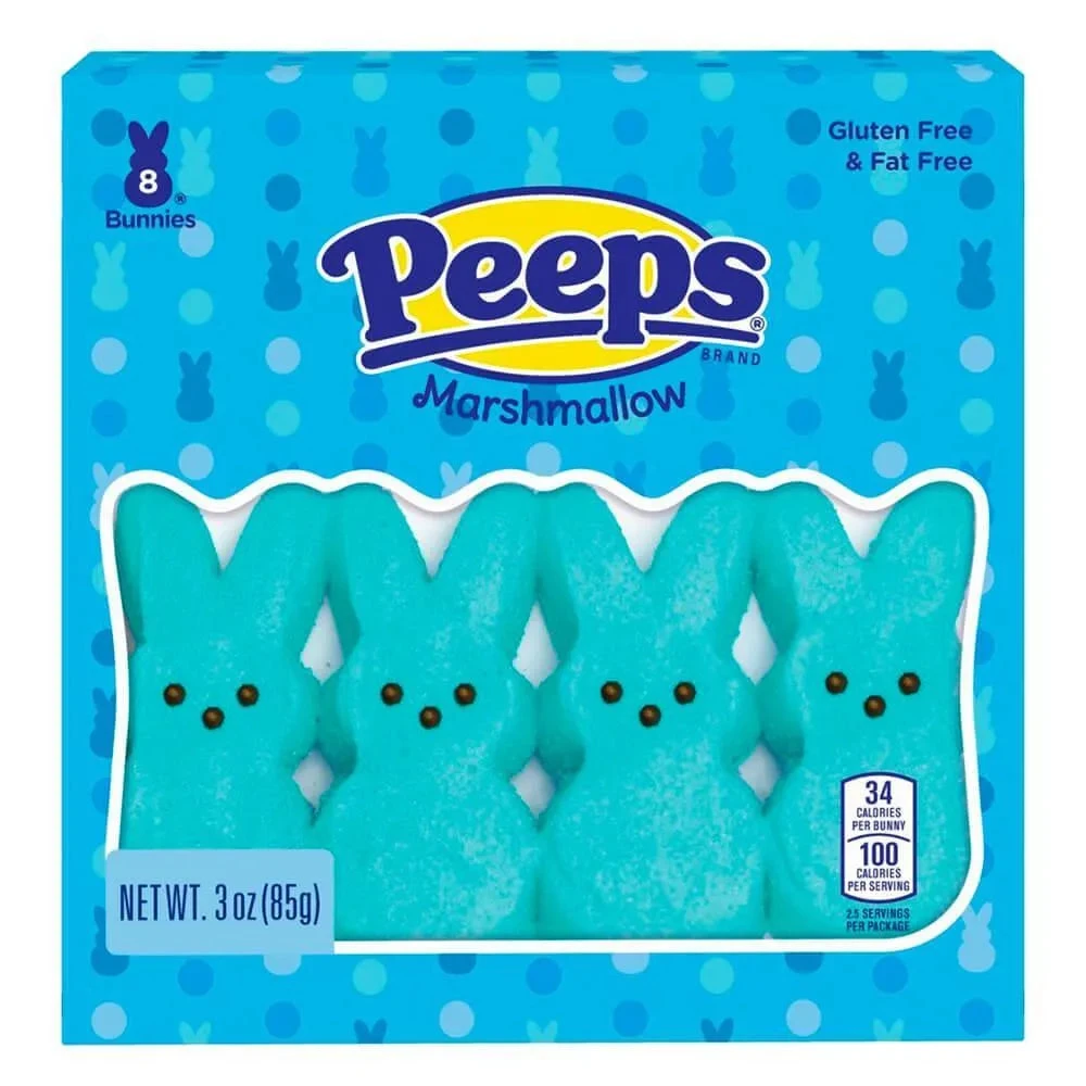 Pack contains 8 Blue Peeps Marshmallow Bunnies.