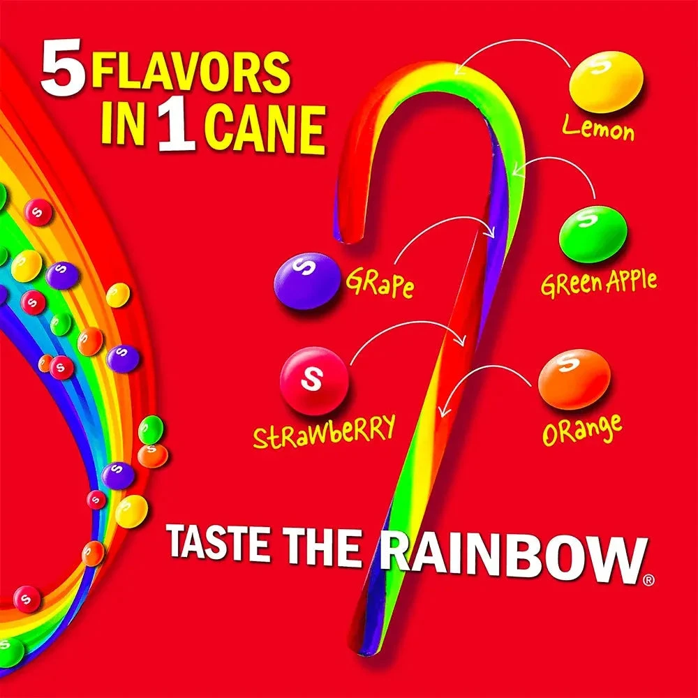 Taste the rainbow this holiday season with Skittles candy canes! Grape, Lemon, Green Apple, Orange, Strawberry all in one candy cane!