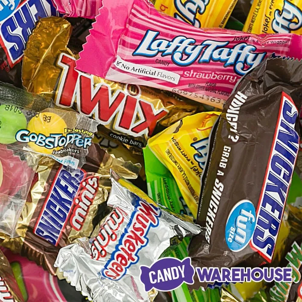 Snack size and miniature size bulk candy in an assortment of popular brands.